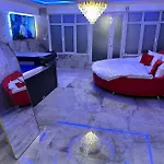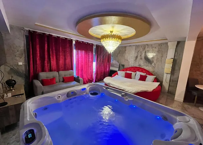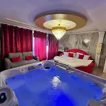 Golden Love - Jacuzzi heeft een zitruimte en is ingericht met een bank en een bureau en voorzieningen zoals een flatscreen TV met satellietzenders om van te genieten. De 1-badkamer accommodatie biedt accommodatie met tegel. Het appartement bestaat uit 1 slaapkamer. De accommodatie omvat 1 badkamer met een bubbelbad, een apart toilet en een douche, waar kamerjassen en handdoeken worden er ook verstrekt.